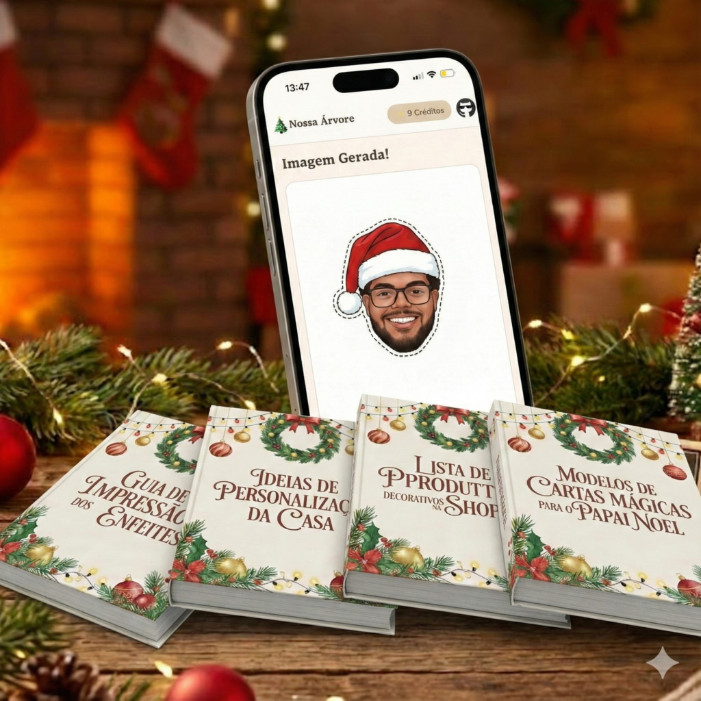 Em segundos, você recebe a arte pronta. É só baixar e imprimir para usar na árvore, porta, quadros, mesa ou onde quiser.